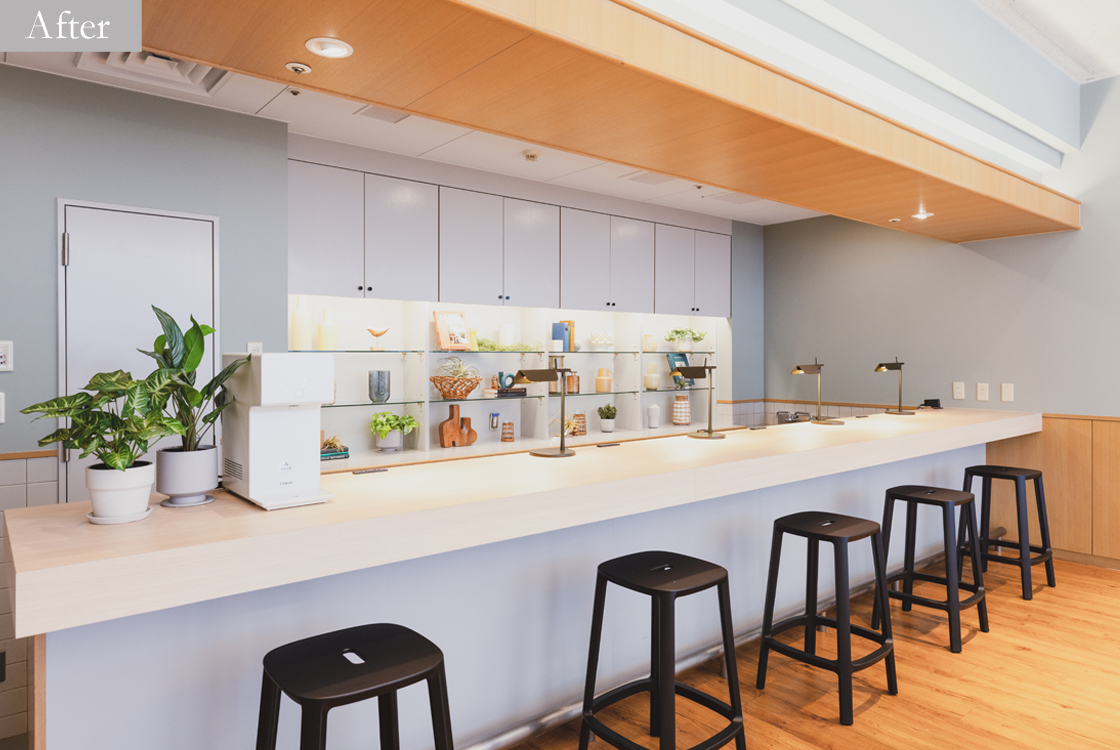 また、内装工事とFFEのトータルのコストバランスを考え、既存の内装を活かせる部分は既存のまま残し、家具や小物によって空間の印象を変化させました。