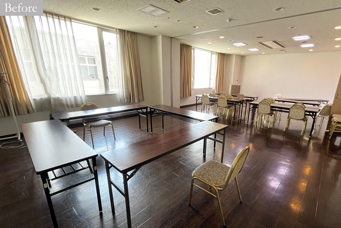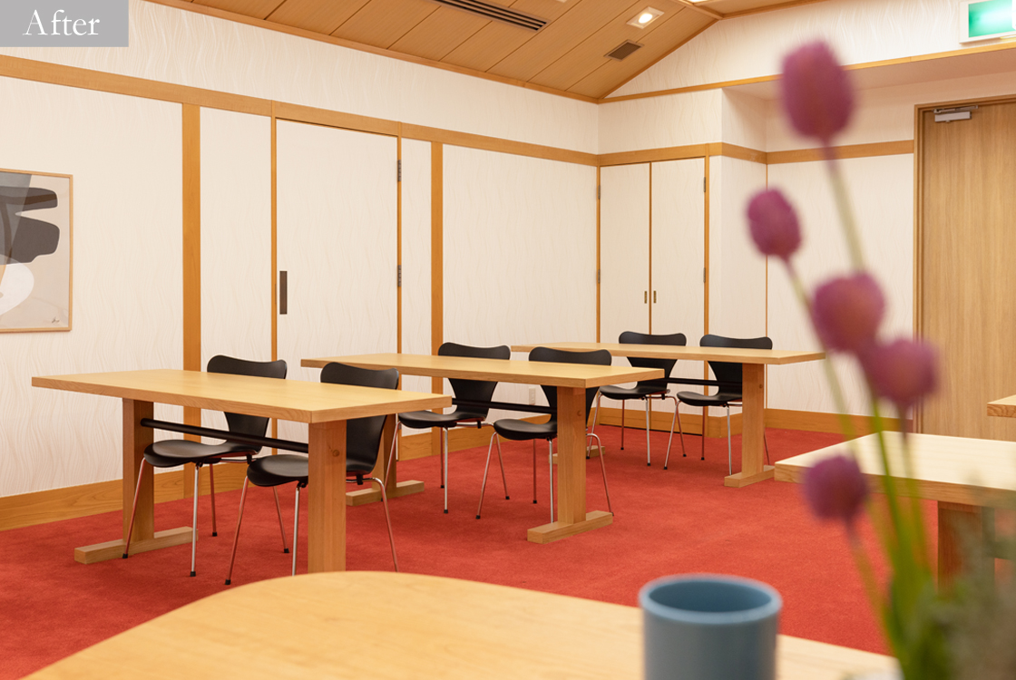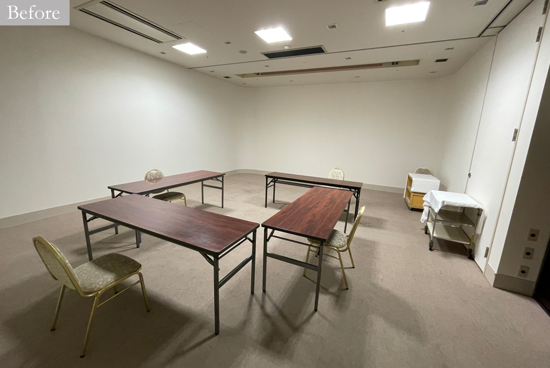 畳敷きのお部屋だったため、会議室として利用しやすいような空間に変更する必要がありました。