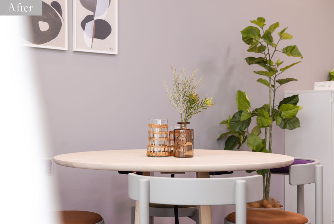 軽いミーティングが出来るエリアとして選んでいるテーブルとチェアはTHYME ダイニングテーブル ラウンド<ACTUS>と、UTO<ACTUS>をセレクトしています。