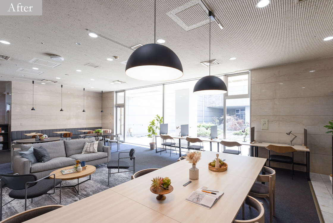 大きく3つの用途(コワーキングスペース・リゾートミーティングスペース・セットアップオフィス)に分けた空間をそれぞれの運営方法に合わせ、家具のレイアウトからご提案をさせて頂きました。