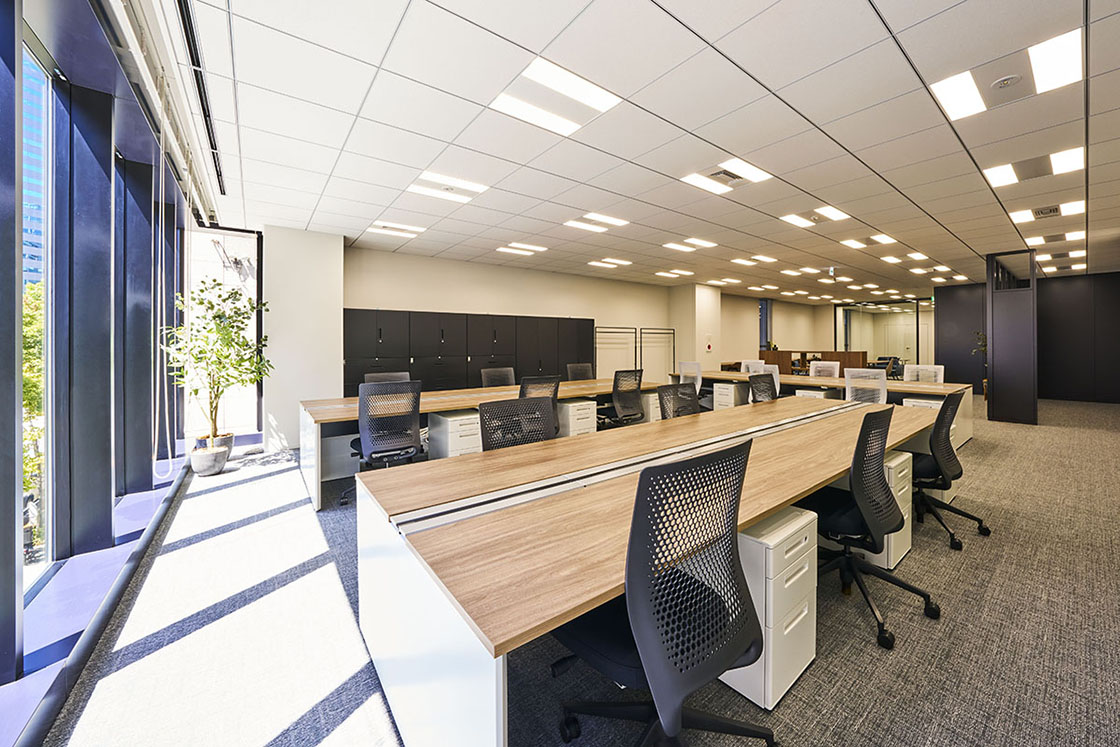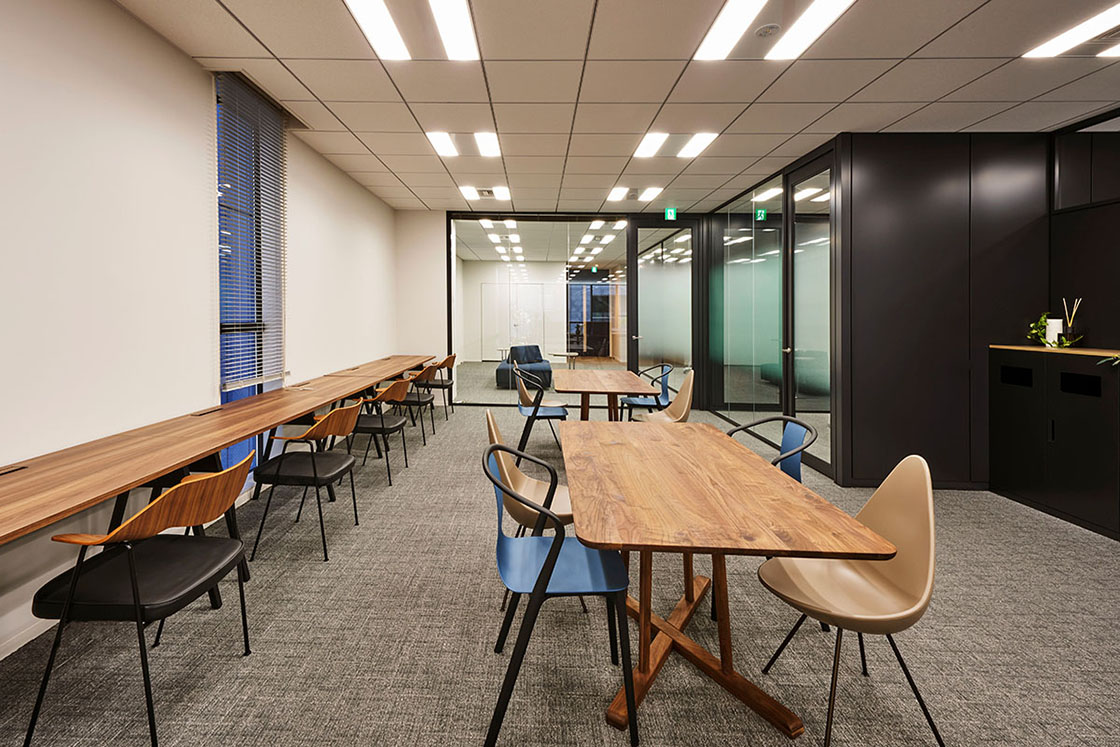 同社は愛知県知立市に本社を置く、電子部品実装ロボットや工作機械の開発・製造・販売を手掛けるグローバル企業です。東京支店を移転するにあたり、温かみがありホッと寛げるオフィス空間を希望され、家具のレイアウトからご提案しました。