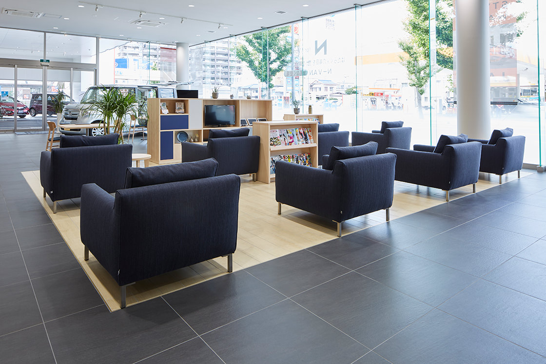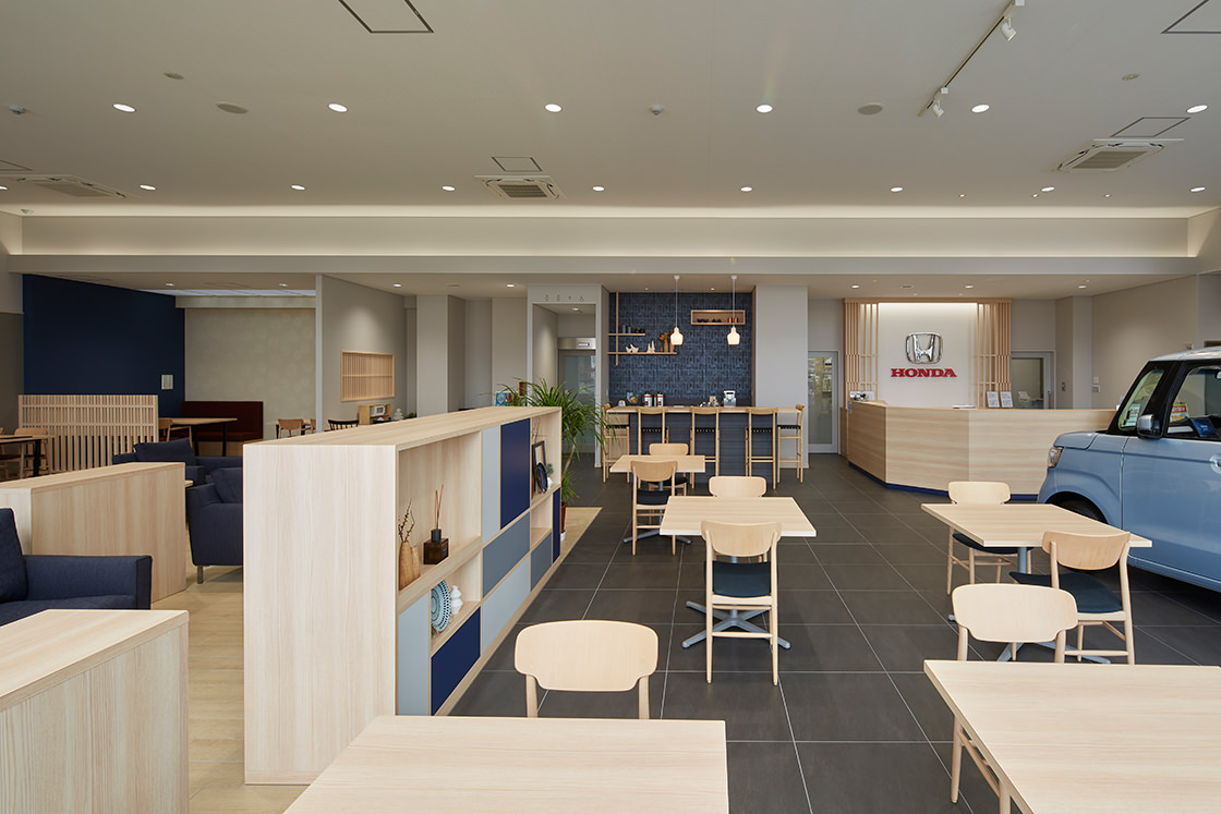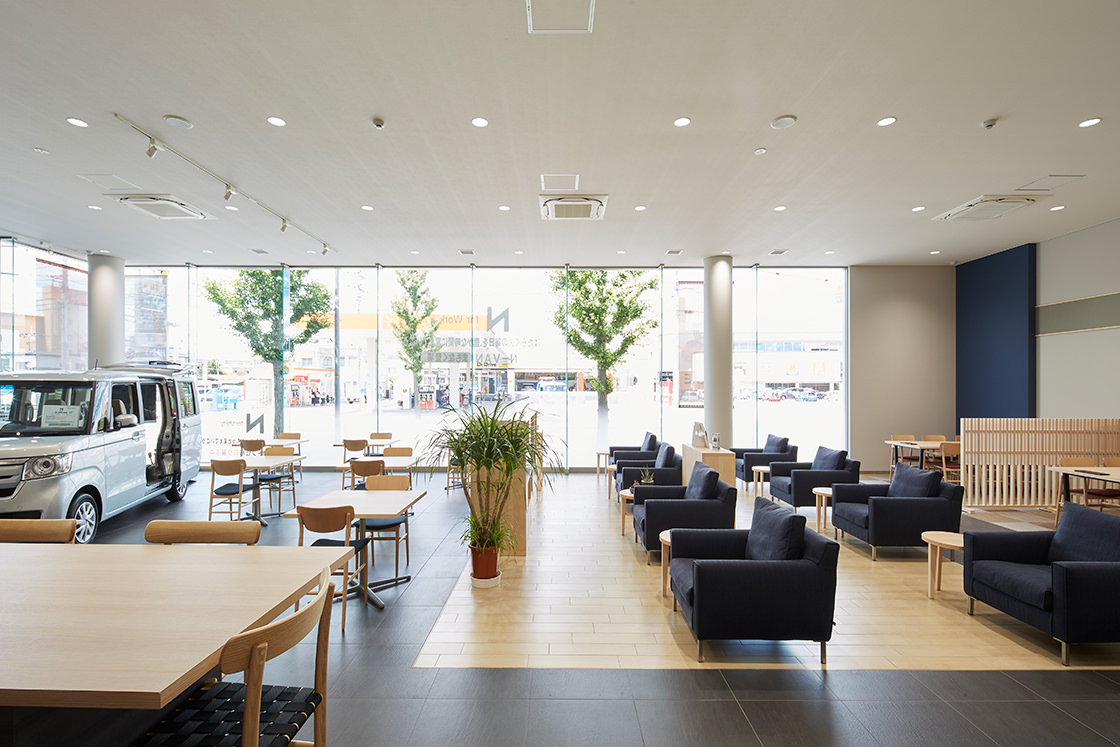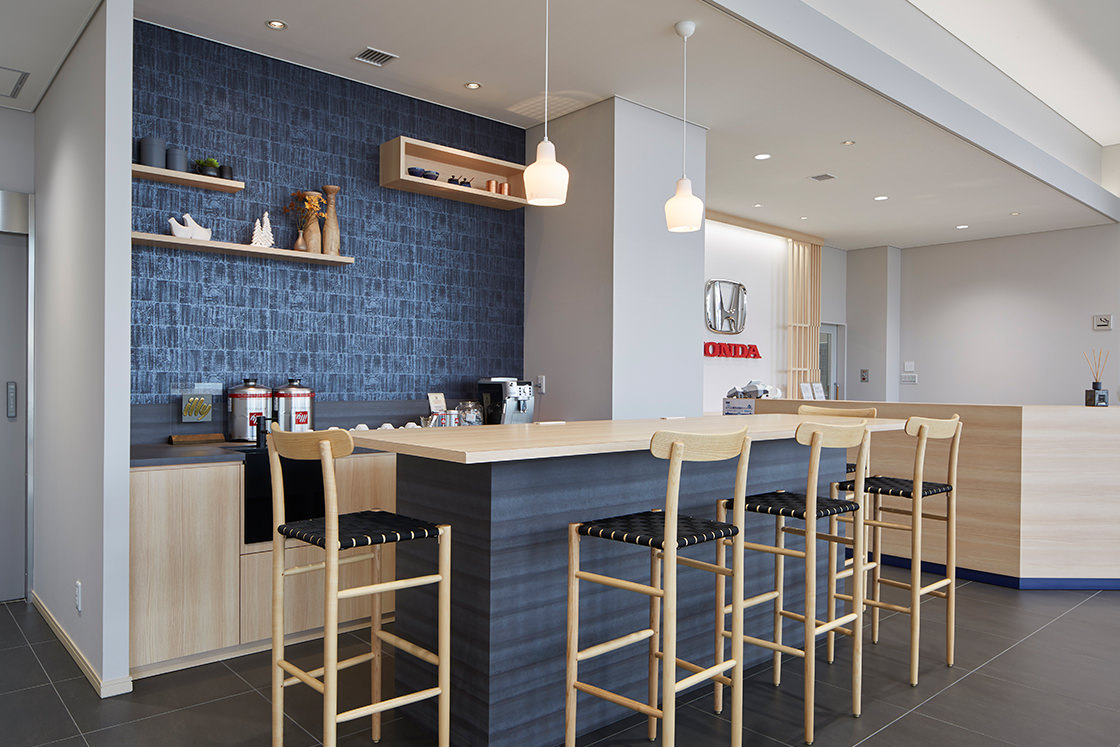 Honda Cars Okayama Korakuen 商業空間 担当範囲家具納品、特注造作家具 デザイン・製作、インテリアコーディネート、ディスプレイ 担当範囲家具納品、特注造作家具 デザイン・製作、インテリアコーディネート、ディスプレイ