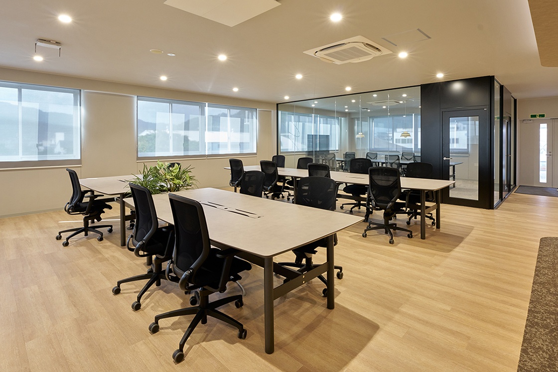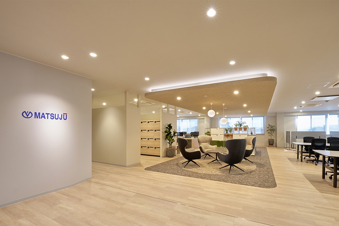 広島県呉市に本社を構える自動車部品メーカー・松本重工業株式会社のオフィス改装にあたり、アクタスが内装設計と家具インテリアの納品等を担当しました。