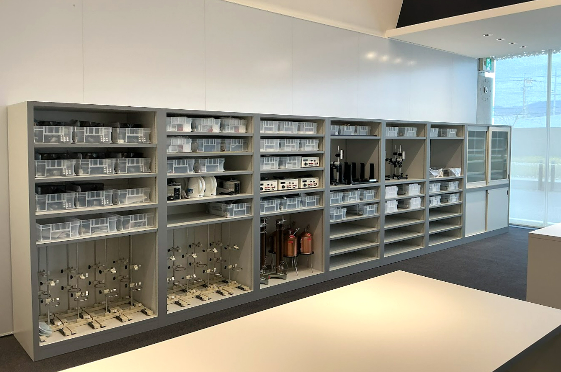 追手門学院大学(大阪府茨木市)が2025年4月に理工学部を新設するにあたり、アクタスでは1年生の基礎実験を行う実験室において、実験用テーブルと椅子、実験器具用収納棚をオリジナル設計・造作にて納品いたしました。