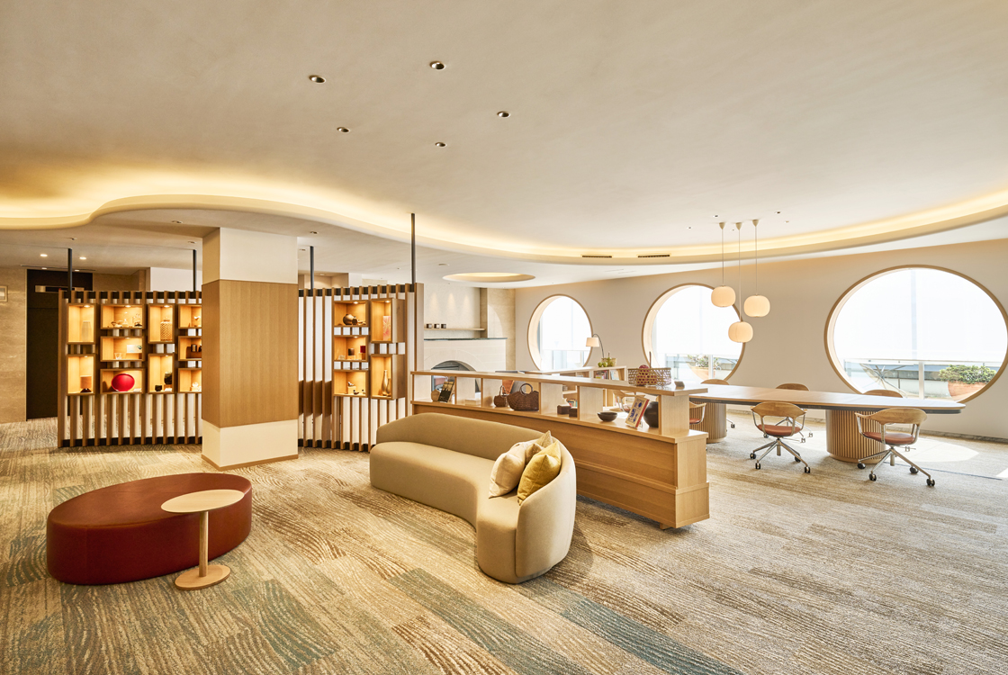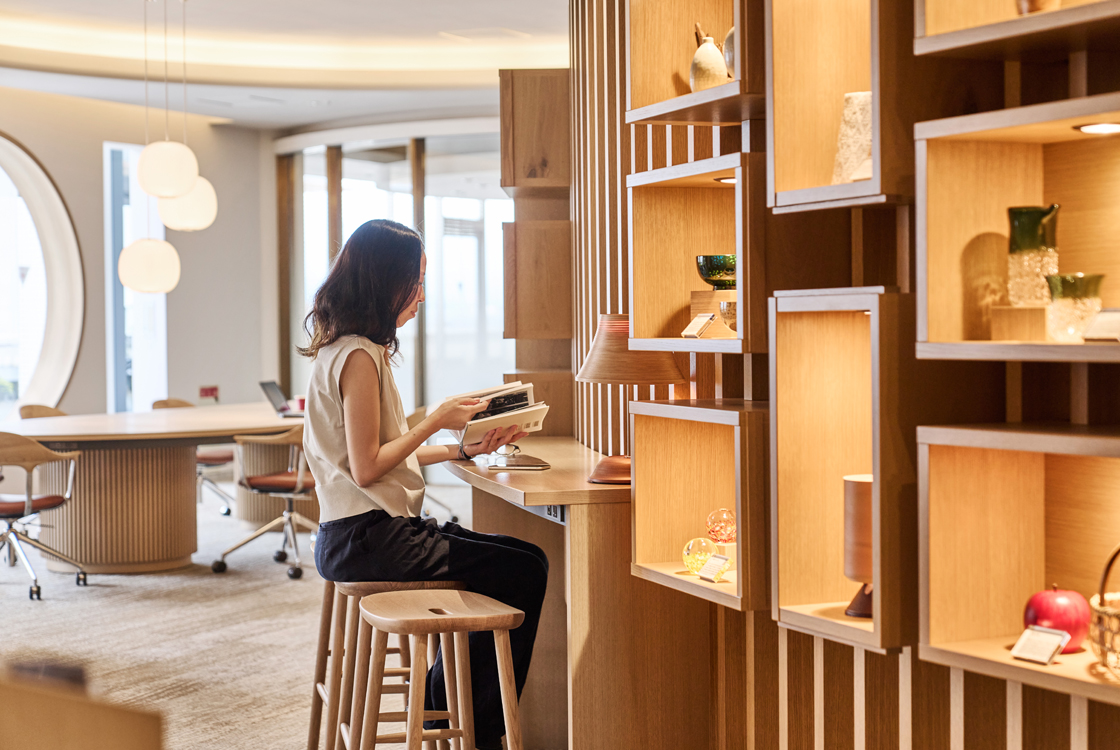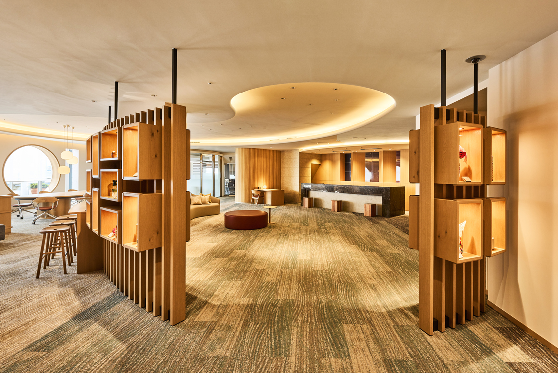 ぜひ知ってほしいという思いから、ロビーを中心に伝統工芸品を体感できる空間、地域の文化や魅力を集め伝える場としてデザインいたしました。