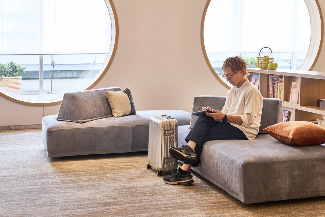 リッチモンドホテル青森のロビーは、北欧のあたたかみのある照明や家具に囲まれながら、これまでにない知的体験の場となっています。