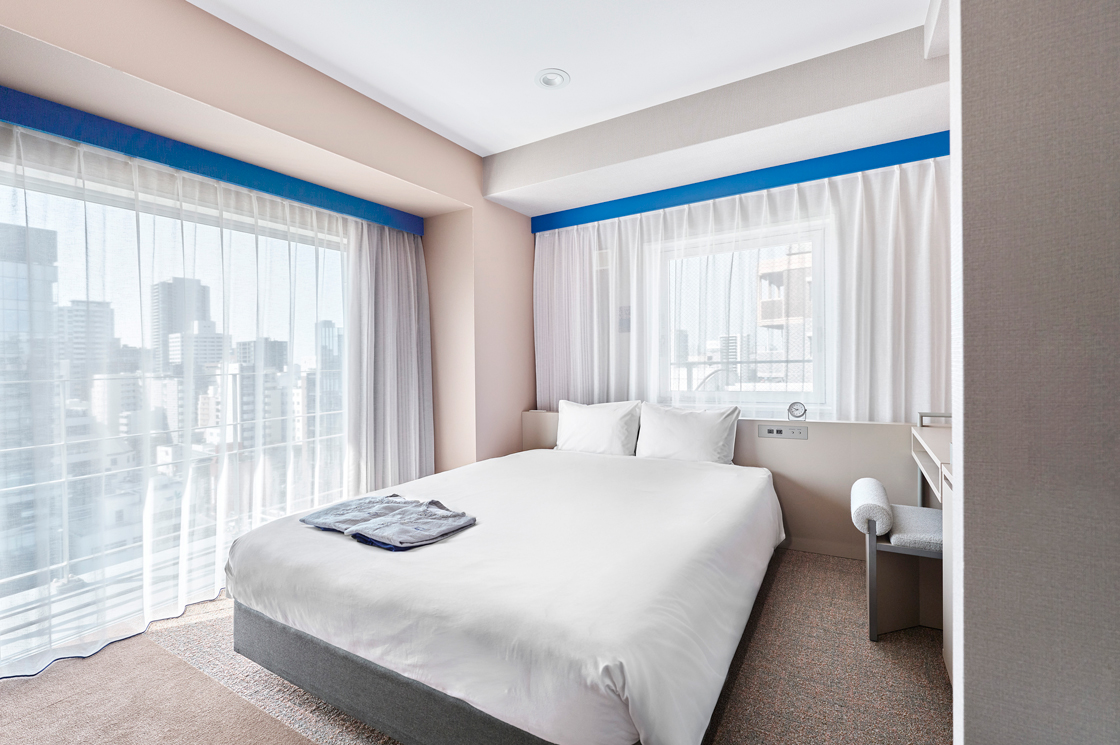 大阪市西区西本町に位置するこのホテルは、地上14階、119室を有し、改装に際して、アクタスはアールエヌティーホテルズ株式会社からZ世代をターゲットにしたホテルのブランディングを受託。客室内装やロビー、レストランなどのデザイン、設計、家具等の納品に加え、コンセプト、ネーミング、ブランドロゴデザイン、ホームページ監修、アメニティ、スタッフユニフォームのセレクトなどをサポートいたしました。