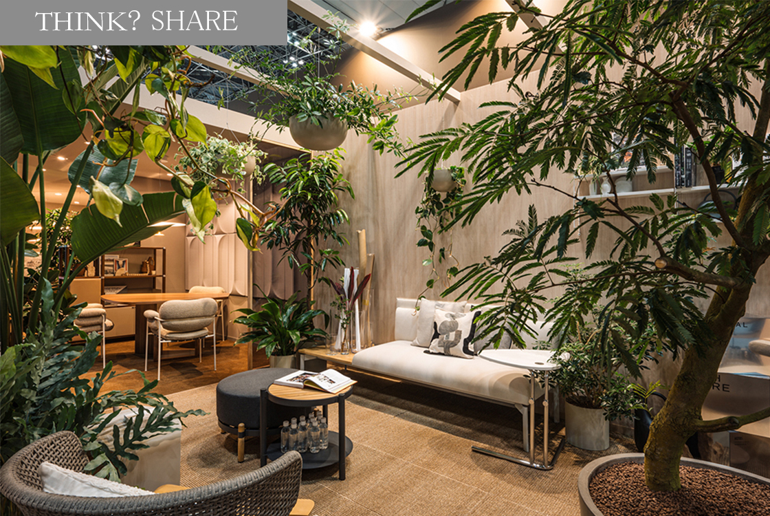 今回のブースは優れた海外のデザイン家具や照明、自然素材をふんだんに取り入れた