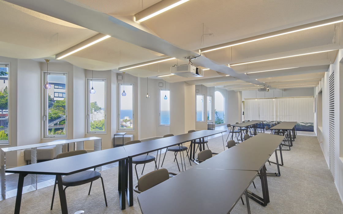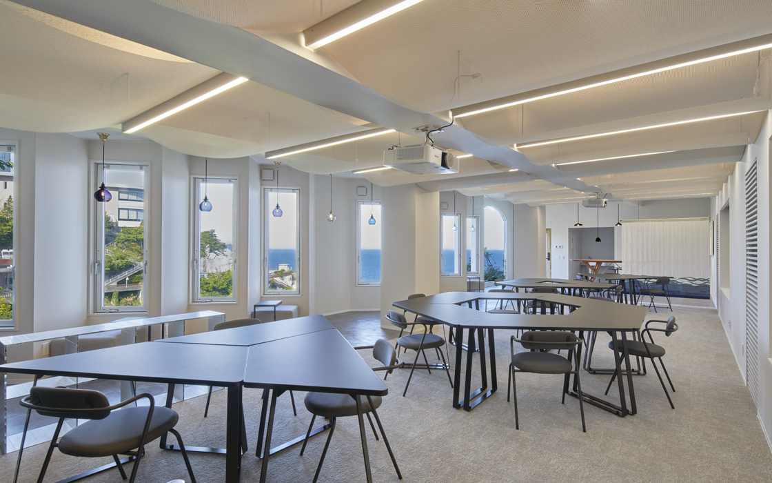 WORK×ation Site Atamiオフィス担当範囲家具施工年2021年担当営業坂田担当範囲家具施工年2021年担当営業坂田自然豊かで相模湾を一望できるリゾート施設内にあるワ―ケーション施設。地元アーティストの手掛けるランプシェードやアートなどの作品がより引き立つよう、シンプルかつ機能的なインテリアをご提案しました。