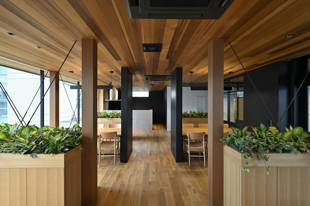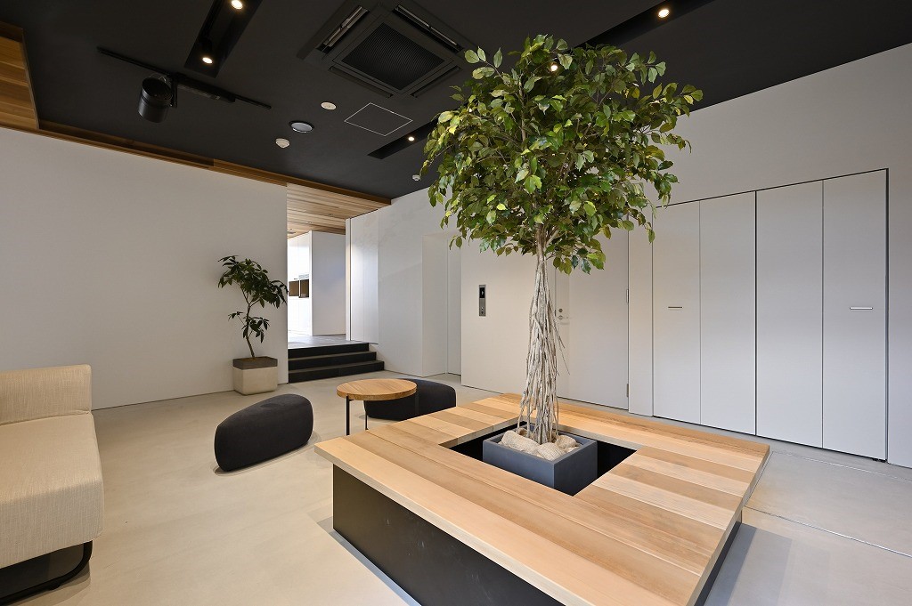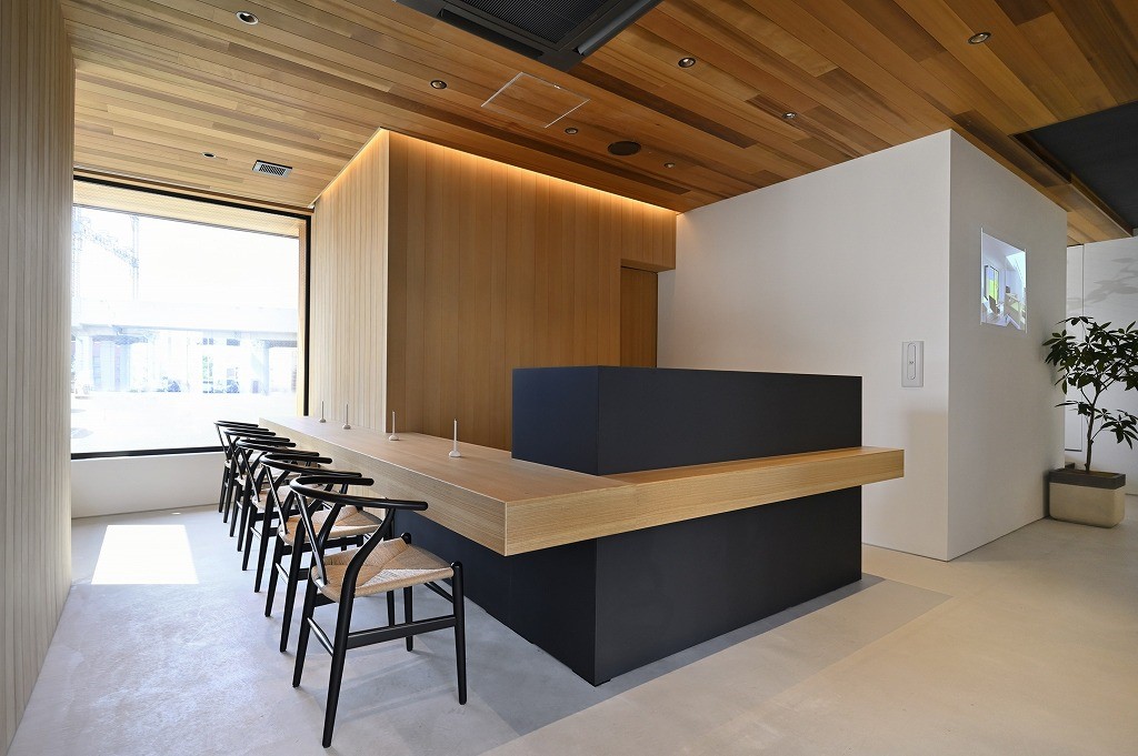 ショールーム棟は受付スペースに北欧の名作椅子「Yチェア」を、商談スペースに アクタスオリジナルの「AOYAMAチェア」をプラン。全体的に北欧の雰囲気で まとめました。