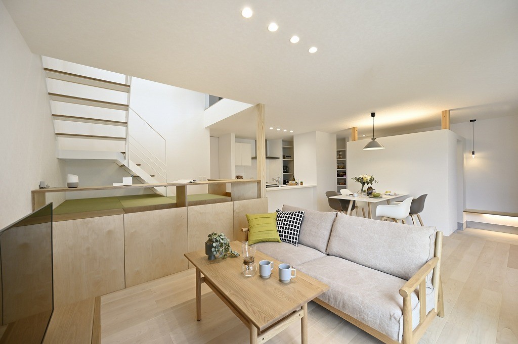 モデルハウスはナチュラルで優しい色でまとめ、ファミリー層を想定したインテリアに。