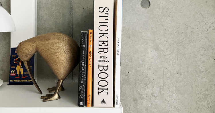 背表紙の「STICKER BOOK」が目に留まり、(それが店員さんにバレて)話を聞くうちに、手元に置いておきたくなり購入。ジョンデリアンという大昔の図柄を使うアーティストのコレクションブックです。