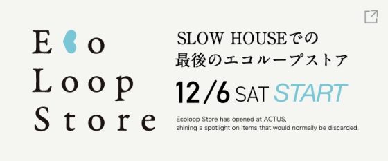 一旦のクローズに際しまして、毎回SLOW HOUSEで大好評をいただいております、「エコループストア」を開催いたします。
