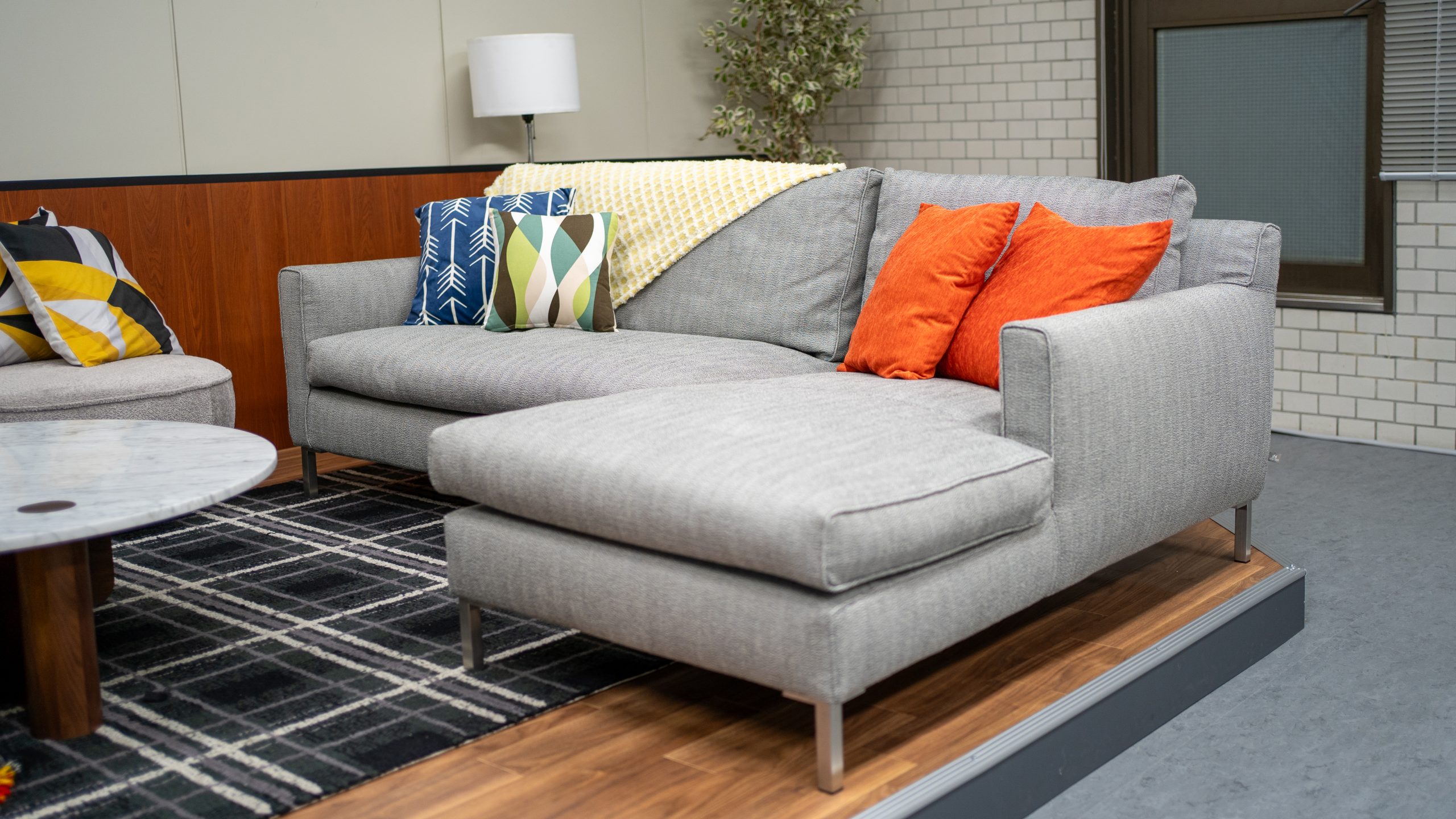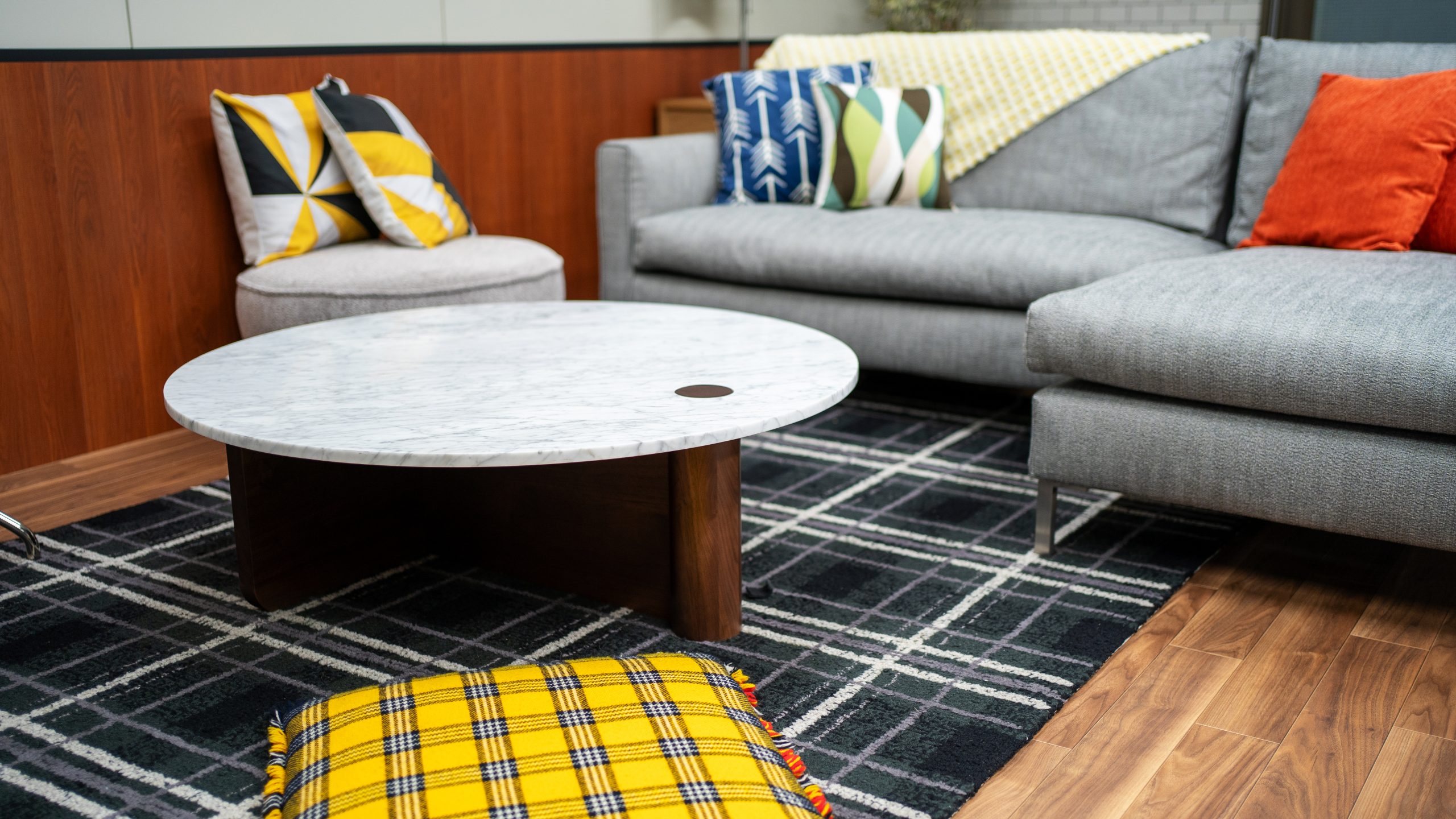 ソファにはデンマークのソファブランドeilersen(アイラーセン)よりSTREAMLINE(ストリームライン)のカウチソファをセレクト。ソファの下には、アクタスオリジナルのテキスタイルKnot(ノット)より、 LILIE(リリー)CHECKラグを敷いています。