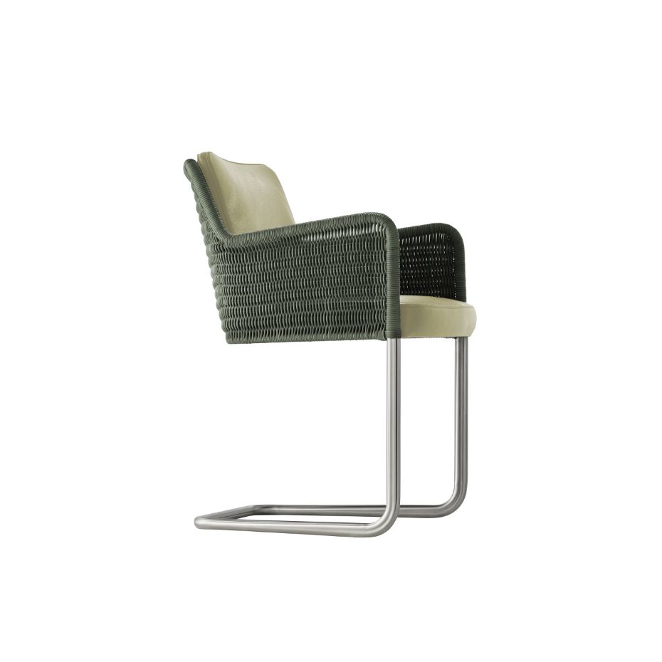 マルセル・ブロイヤーが1928年にデザインしたカンティレバー構造の「D40」。多くのカンティレバーチェアの中でも、アームからレッグヘと弧を描きながら繋がっていく美しい曲線が特徴。
