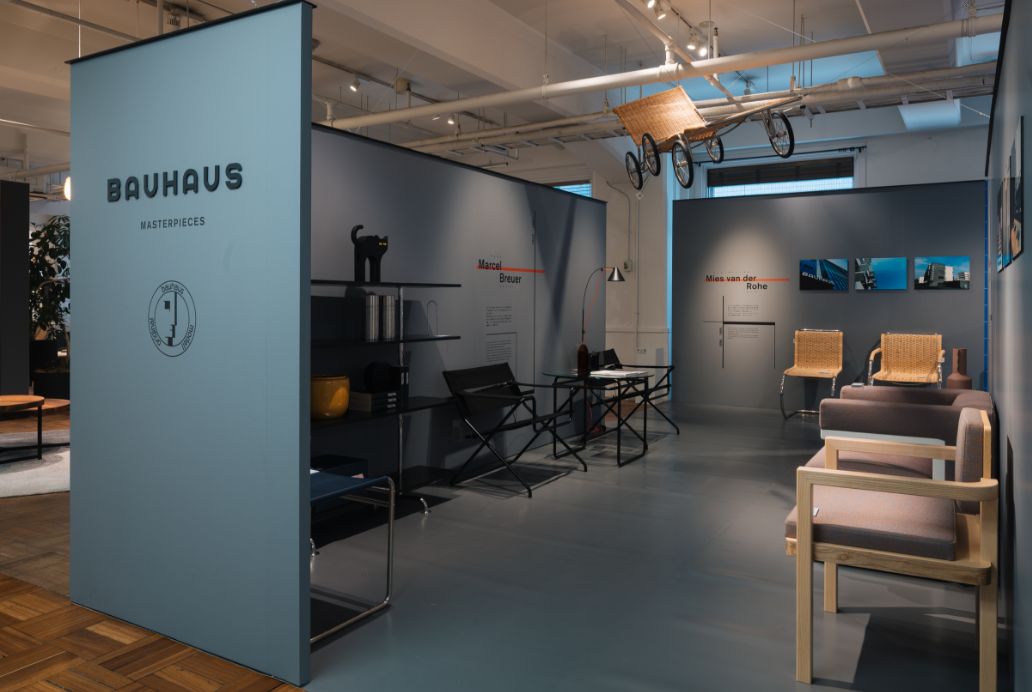バウハウスを代表するデザイナーの名作コレクションとともに、バウハウスのデザイン思想から着想を得て現在に継承する