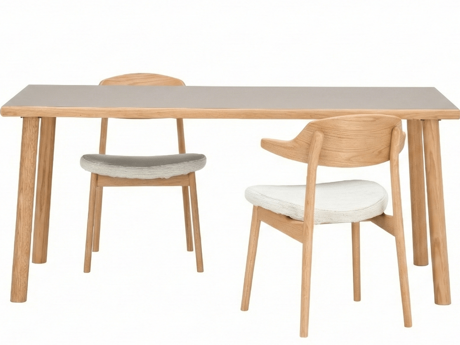 天板に用いられたメラミン仕様は、単なる化粧板ではありません。指紋が目立ちにくい「指紋レス」、傷に強い「アンチスクラッチ」、そして「抗菌」機能を備えた高機能素材を採用しています。 マットな質感のソリッドカラー天板と、温かみのある無垢材レッグを組み合わせた素材のコントラストが、モダンで洗練された印象を与えます。