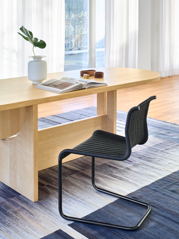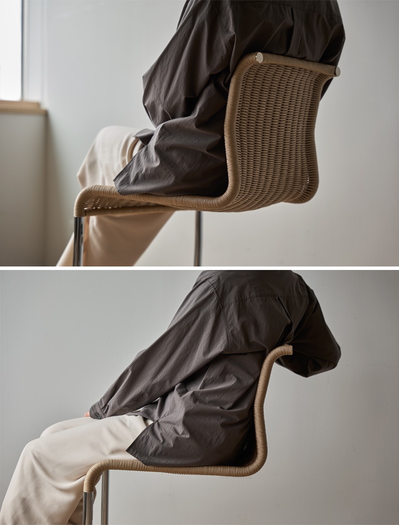 後ろ脚のないカンチレバー(片持ち)構造と、スチールパイプのフレームに編み込まれた背もたれと座面。そのシンプルな美しさはそのままに、背もたれの形状などを少し変えることで、さらに軽やかに、新しい座り心地へと生まれ変わりました。さまざまなダイニングテーブルと合わせやすく、LDKをスタイリッシュに演出します。