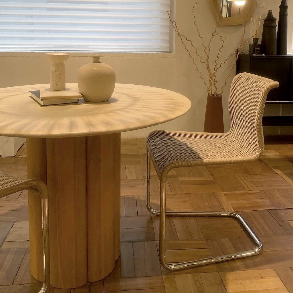 人気の高い「NATADORA」の円形ダイニングテーブル「KORA」とも相性がよく、壁際のミニカウンターのような場所にもよく合います。