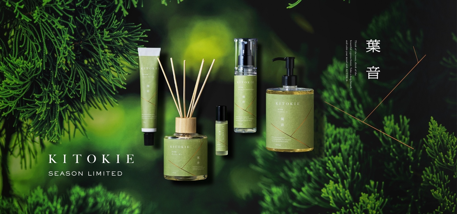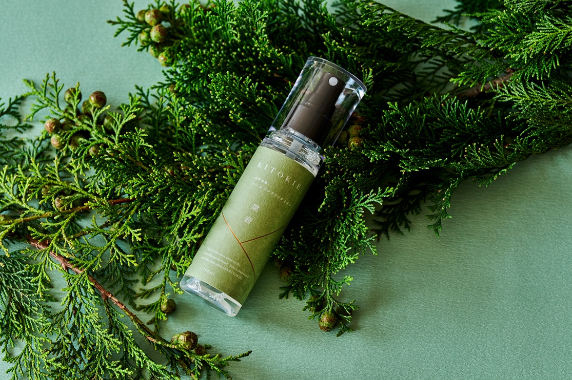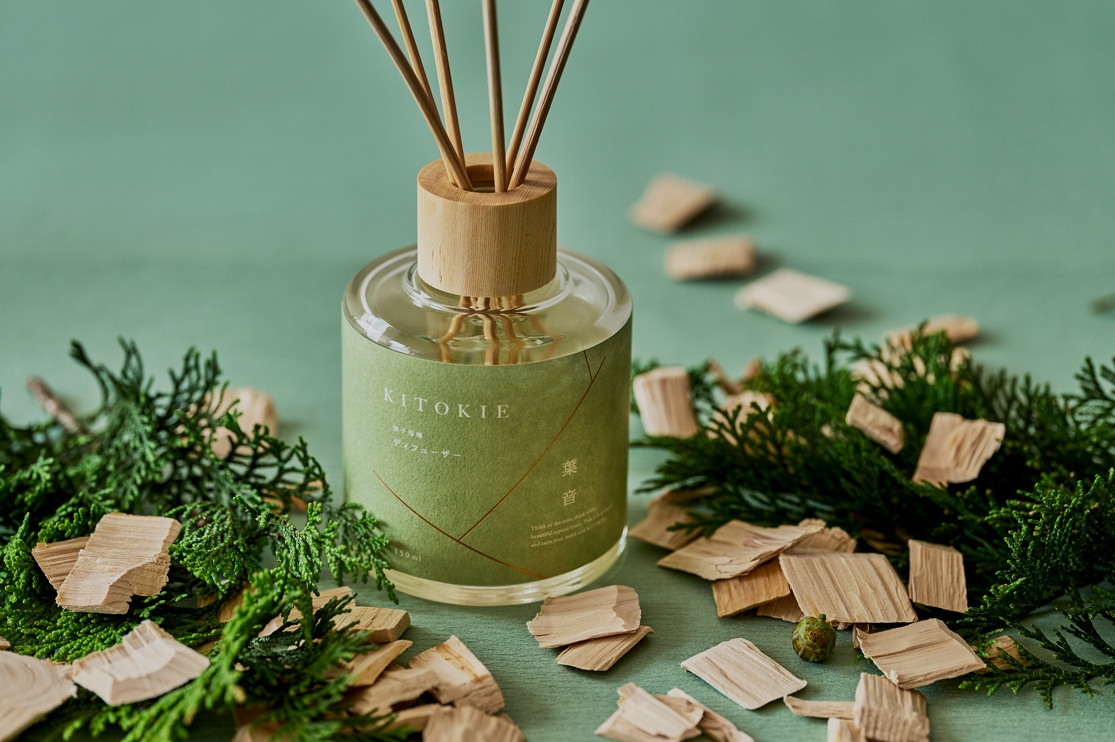 間伐ヒノキを使った「KITOKIE」から、今夏限定の新フレグランス〈葉音〉が登場。夏の熱気を爽やかに一新する香り。