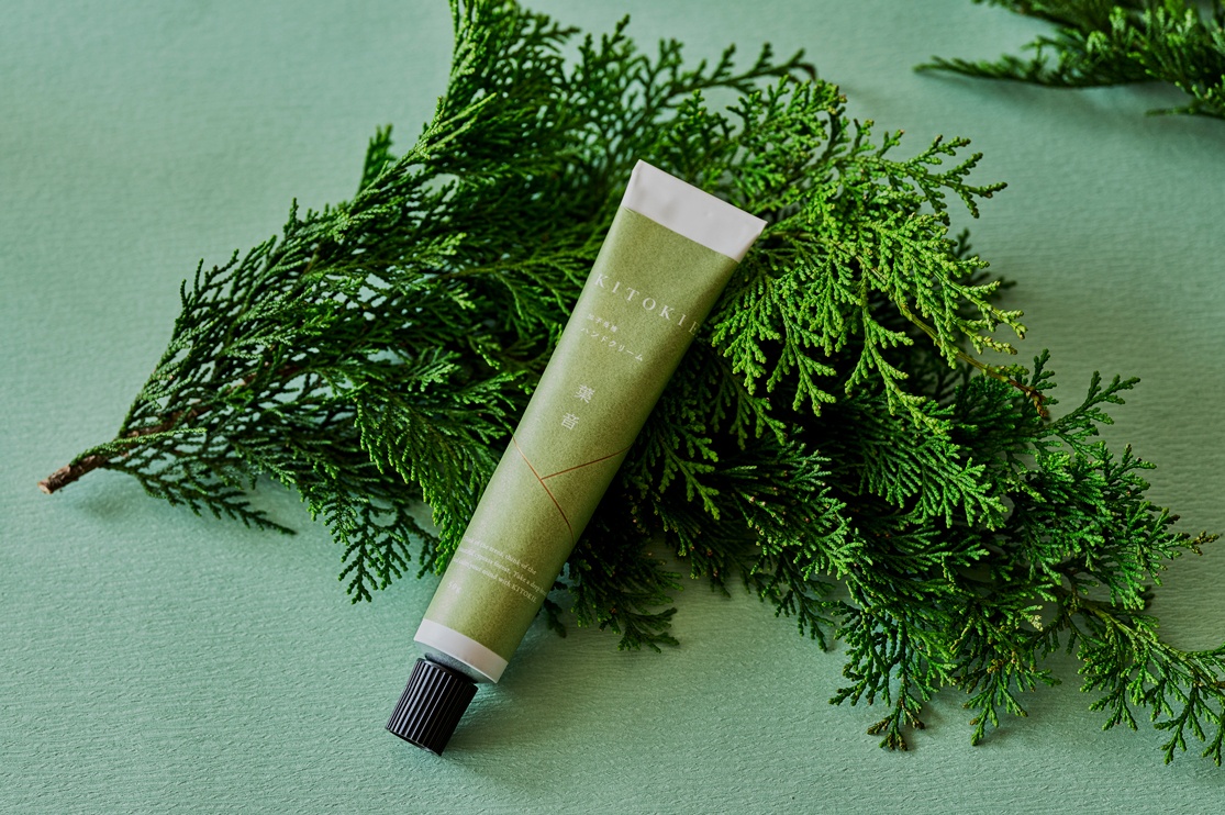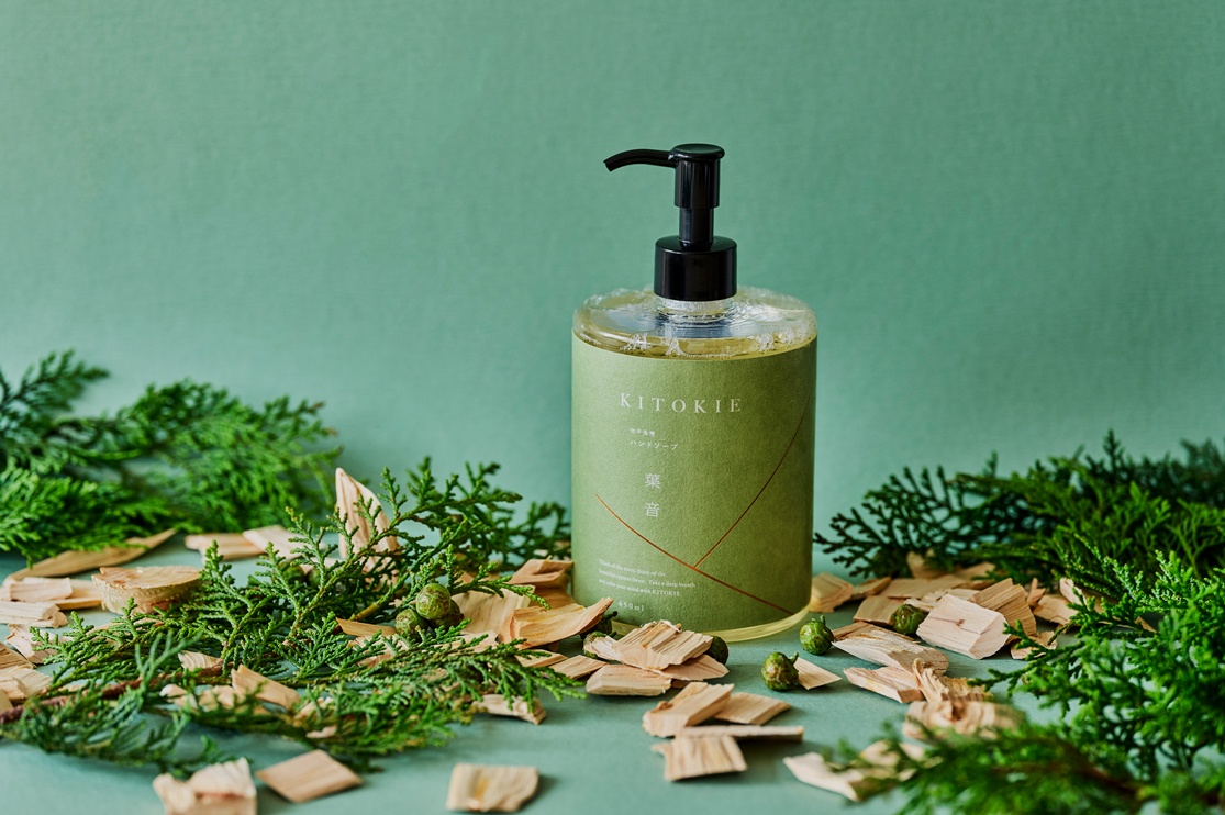 KITOKIEは、フレグランスおよびボディケアシリーズで、ヒノキの産地として名高い岐阜県中津川の「加子母(カシモ)ヒノキ」の間伐材から抽出した精油を使用しています。昨年、2024年度グッドデザイン賞を受賞しました。