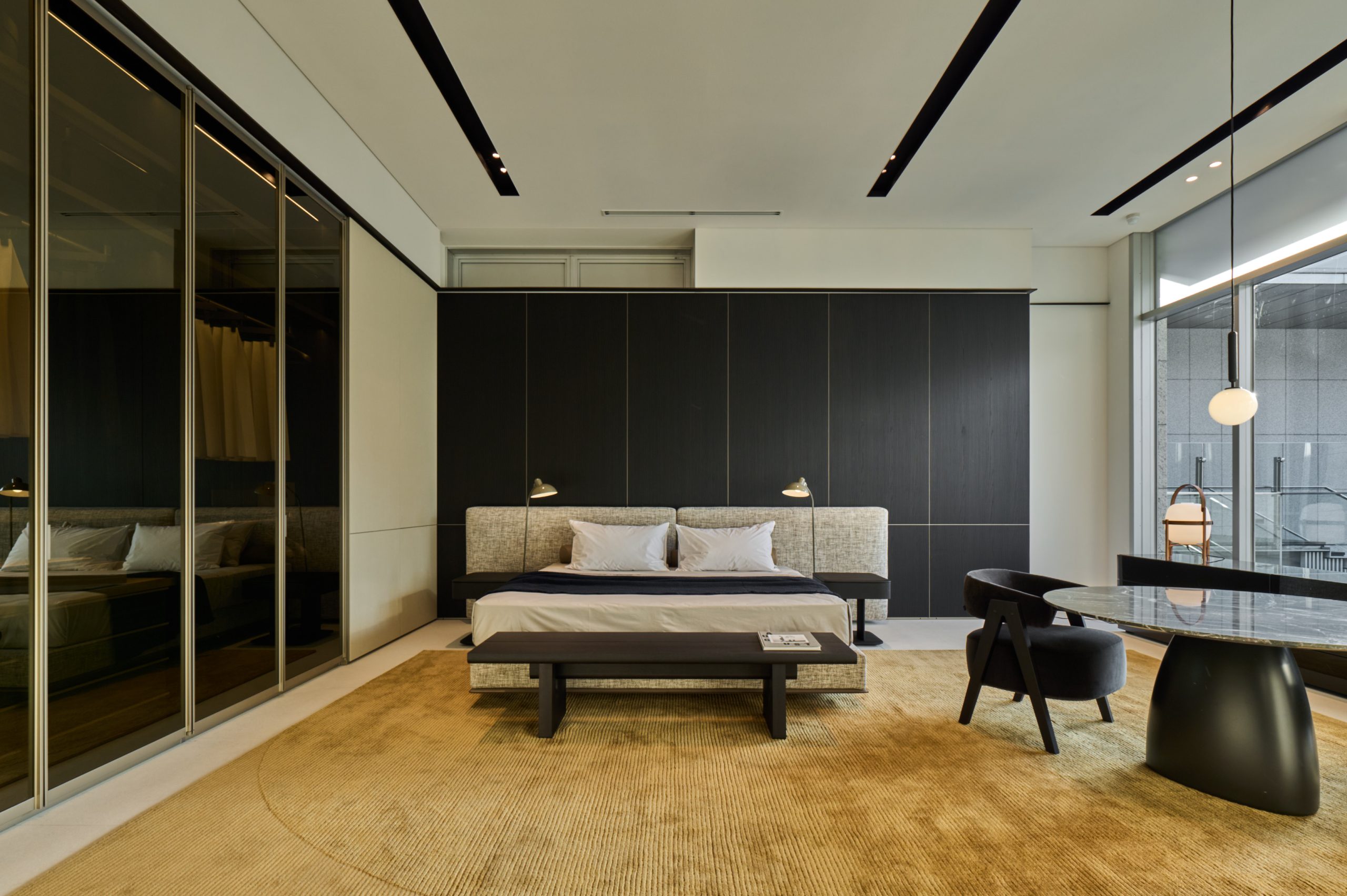 寝室という概念ではなく、パーソナルなくつろぎのスペースまで含んだ<Poliform>のベッドルームスタイルをご提案します。