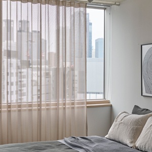 ファブリシアは、美しい布が部屋の中で水草のように広がってゆくことをイメージし、アクタスの家具とのトータルコーディネートを考えてつくられたファブリックです。布ならではの和らぎと優しさ、格式を醸し出し、カーテンだけでなくクッションカバーやベッドスプレッド、照明、ファブリックパネルなど様々なものに形を変えます。